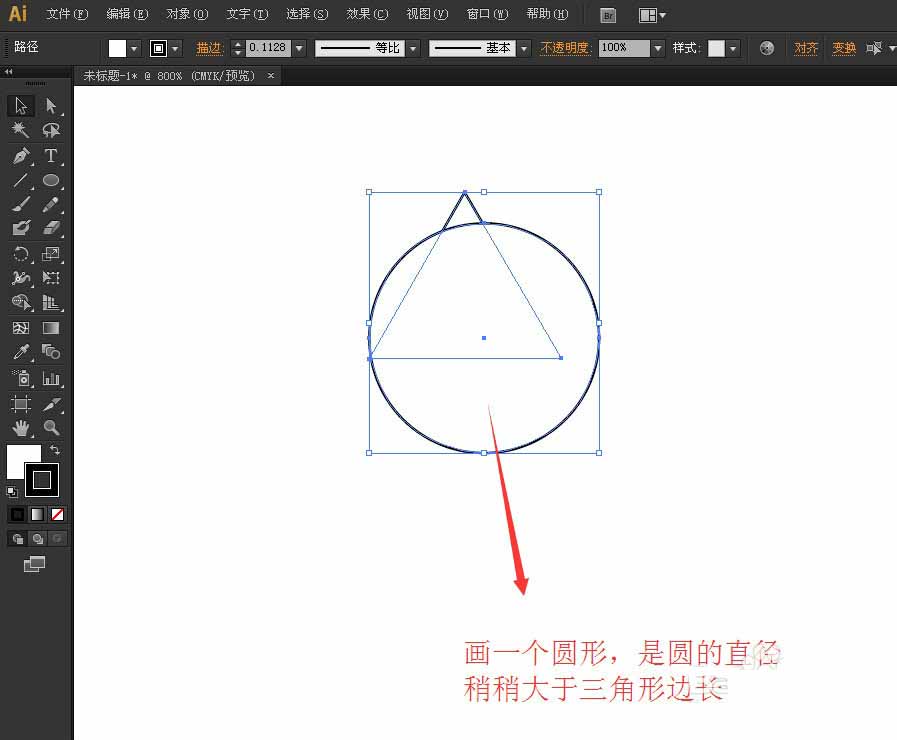 圆的直径要比三角的边长稍长一些。