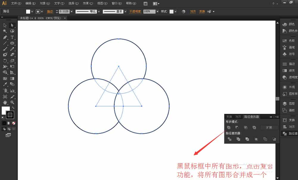 8、使用右边的路经查找器,将被全部选中的图形合并为一个。