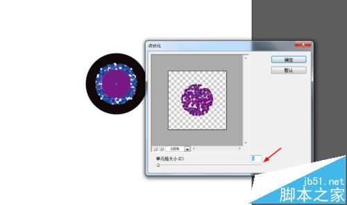 3、接着选中两个小圆到效果—像素化—点状化,如图所示