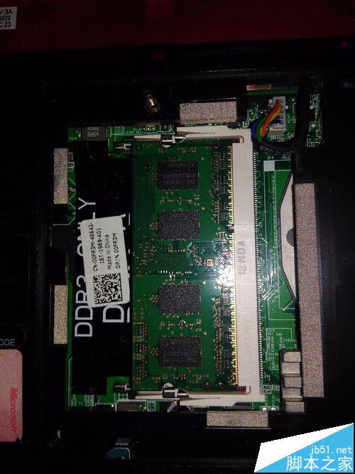 2、拆卸后盖,取下内存。用螺丝刀拧下固定螺丝,取下后盖,看到内存。掰动两面卡扣,取下内存。