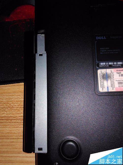 3、取下光驱。光驱有固定螺丝,拧下固定螺丝,向侧面抽动光驱,取下光驱后,看到光驱下面有螺丝,拧下,为后面步骤做准备。同样的也拧下电池下面的固定螺丝。