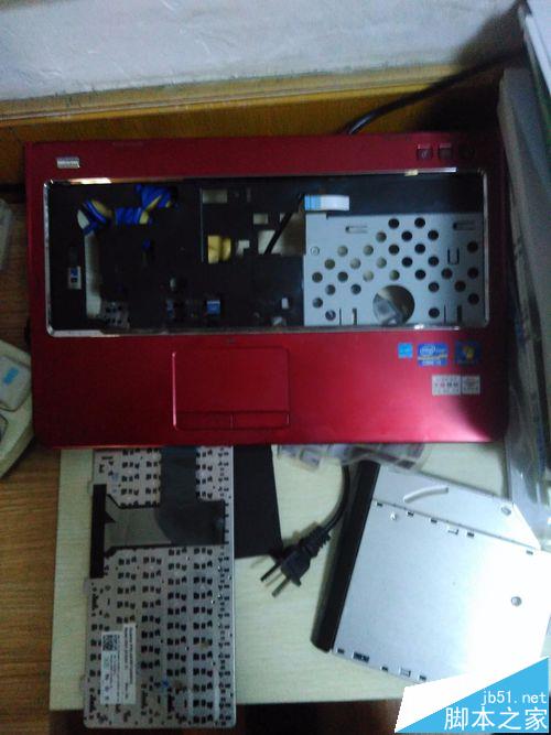 5、取下键盘下面板。拧下键盘下的螺丝,拆开连接线。取下面板。