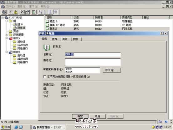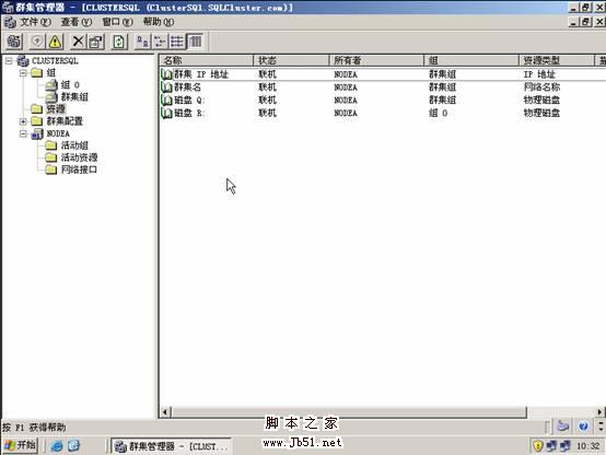 32. 测试 集群,通过停止NodeA 或NodeB ,来查看群集组-> 群集名中的节点变化情况。