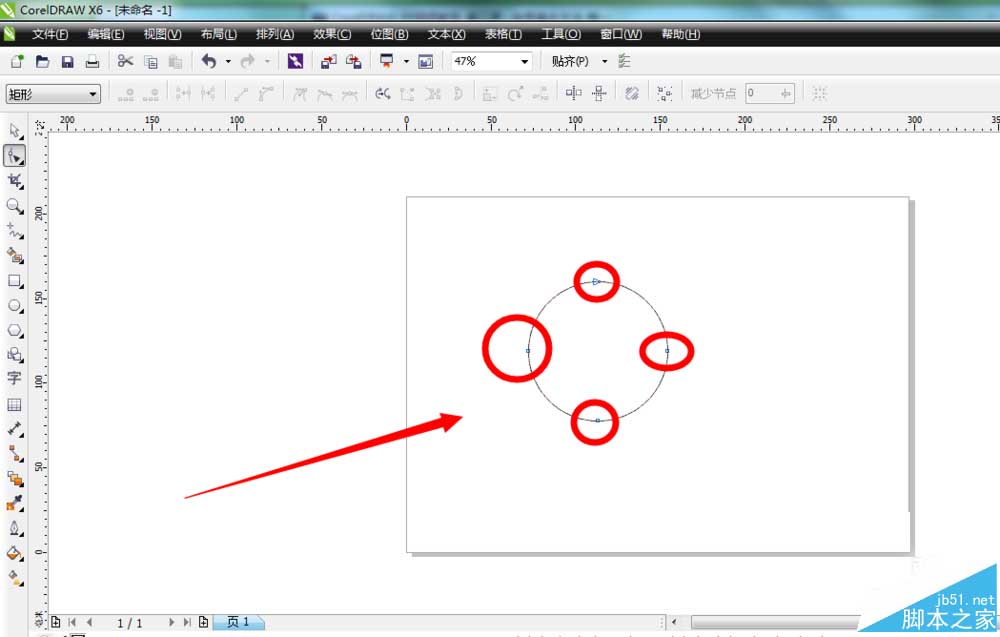3、点击切换到“形状工具”,可以看到正圆上面有四个节点