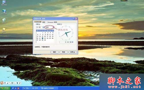 1、在窗口右下方有时间显示,鼠标指示时间上左键双击;