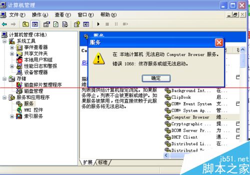 3、启动另外一个服务computer browser,同样也是启动不了。