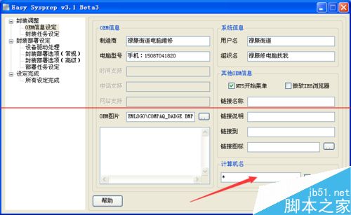 6、系统封装一步到位,其中和上次封装不同的是,修改了计算机名。估计问题也就是出在这里。