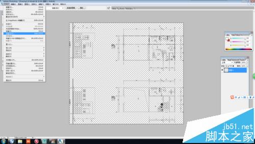 9、打开后发现图纸为透明的,这是PS软件图层默认为透明,不要管。点击”文件“下拉菜单下”储存为“,出现储存为对话框