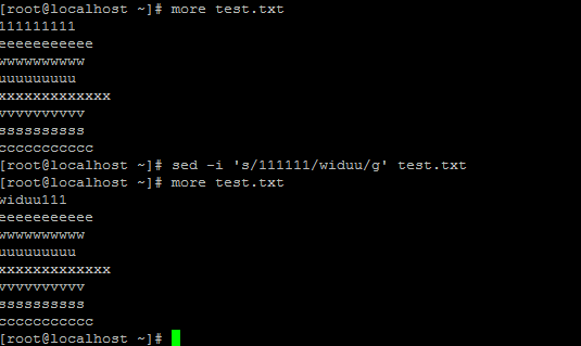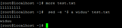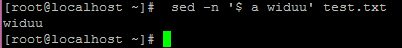 > sed -e '$ a widuu' test.txt #在test.txt的结尾处添加widuu