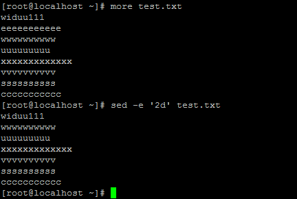 例如:#sed ’1,2d’ fstab 就可以将fstab的前两行删除并显示出来,但是它不会改变源文件。