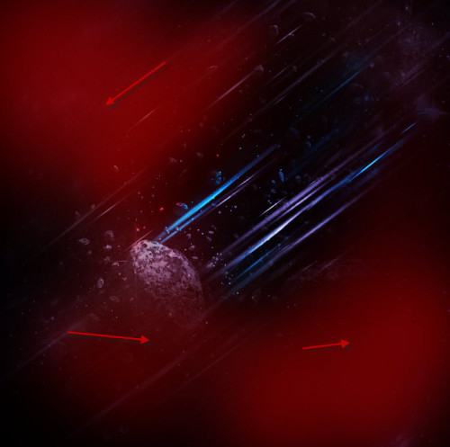 使用软橡皮擦,淡化这一新的小行星层的一些部分如下所示: