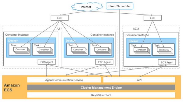 ECS是基于一种专有的集群技术,而不是通过诸如Docker Swarm,Kubernetes,Mesos等引擎实现的。这可以和Google容器引擎(GCE)作一对比,GCE后台使用的就是基于Kubernetes的。