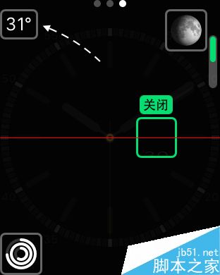 6、随后我们转动 Apple Watch 侧边的“数码皇冠”按钮,如图所示,可以把这个角落显示的信息更改为电池电量。