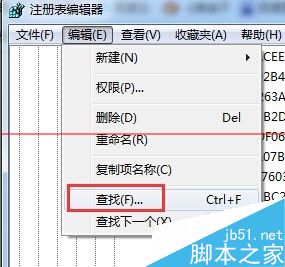 16、然后同时按下win键+R键,运行”regedit“打开注册表编辑器,进行注册表删除。编辑--查找。(再强调下,删除注册表前请做好备份,毕竟稍一不小心删错了,把系统整崩溃了也是很忧伤的事。)