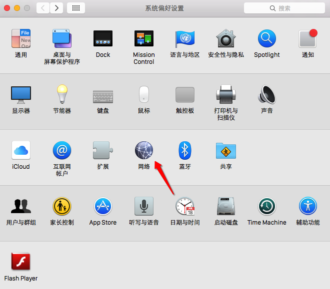1)在弹出的系统偏好设置对话框选择“网络”。