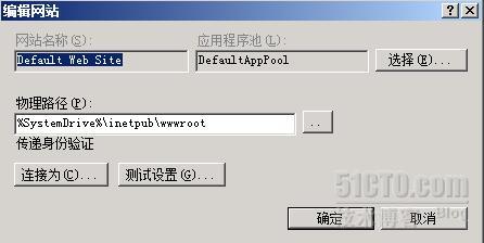 在【IIS管理器】中,点击默认站点右侧【操作】窗口中的“基本设置”,可以看到默认站点的物理路径为“%SystemDrive%\inetpub\wwwroot”(%SystemDrive%表示安装2008R2系统的磁盘分区),这个路径对应的就是站点的主目录。