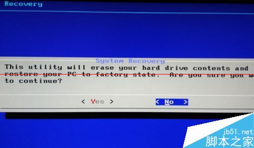 2、进入安装界面后,会首先提示这个工具会删除整个硬盘上所有的数据,询问用户是否继续。如果之前硬盘中有数据,一定要在这一步之前通过其他方式导出。选择Yes继续