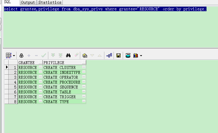 如图:查询的是 RESOURCE 角色的权限