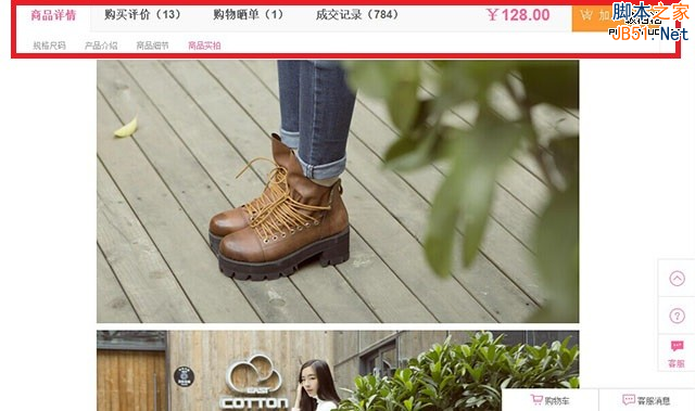 商品详情页的内容比较多,所以跟随性的导航设计很有必要。跟随导航在商品详情页的出现能为用户提供很大的便利,但在大小上还需要设计师来掌握,隐形全面的导航才是用户真正喜欢的导航。