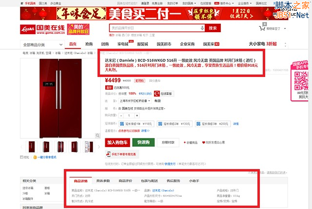 国美在线在商品详情页上首先列出一系列用户真正需要了解的关键点,再在接下来的部分中一一详细介绍。