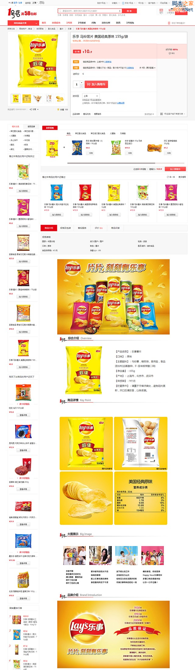 一号店商品详情页的页面长度控制比较恰当,尽量把相关事项交代清楚,不加入其他可有可无的成分。