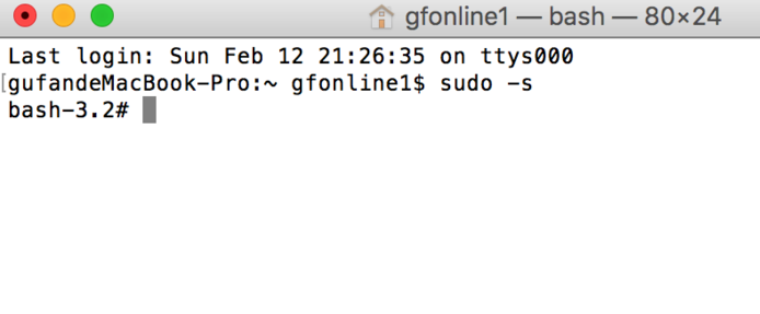 切换至root身份,输入:sudo -s,回车,若有密码则输入密码,密码的输入不会显示,输入完成直接回车即可。