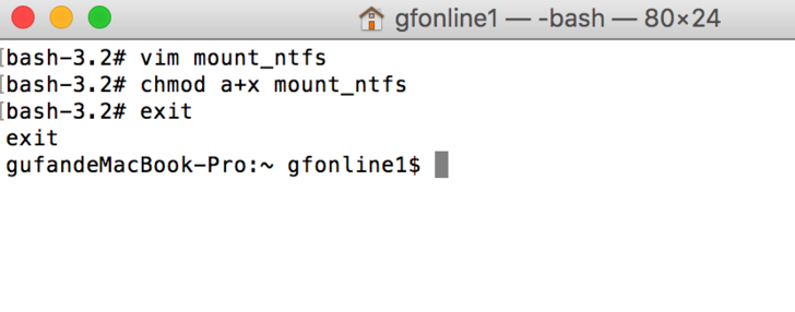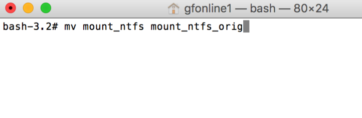 将系统自带的挂载程序改名,输入:mv mount_ntfs mount_ntfs_orig