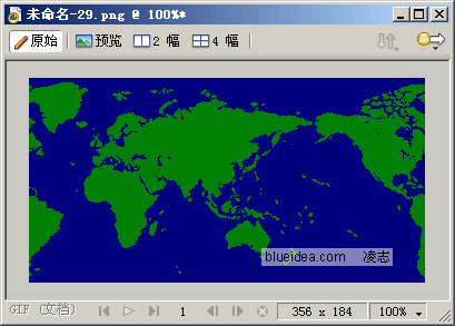 3、进入Fireworks,新建文件,粘贴。粘贴后利用裁剪工具将世界地图部分裁剪下来,裁剪时一定要放大比例进行裁剪,精确一些。