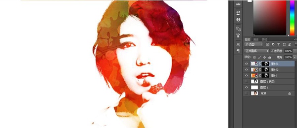 作者制作水彩人像的方法非常快捷,过程:先把人物抠出来,用调色工具转为黑白,并增加明暗对比;然后找水彩素材叠加到人物暗部区域即可。