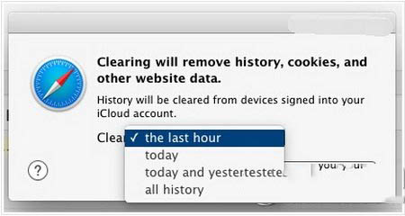 同时你将看到一个“使用icloud账号接入设备的浏览历史将会被删除”的提示。就是说这个操作将在使用相同账号登录的所有Mac和Ios并配备最新版safari的设备上执行,这也是一个不错的特性可以用来删除远程计算机的浏览器缓存或是历史记录。