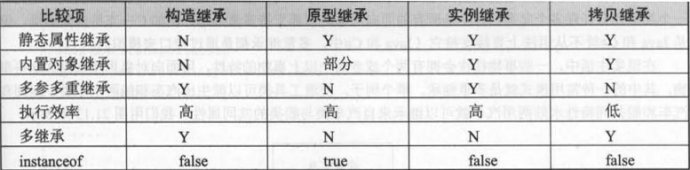 构造法不能继承类型的静态方法,原型继承得不完善(某些核心对象的不可枚举方法不能继承),而实例继承法能对原生核心对象或者DOM对象进行继承,它通过在类型中构造对象并返回的办法来实现继承,因此instanceof验证会是false,不支持多重继承。