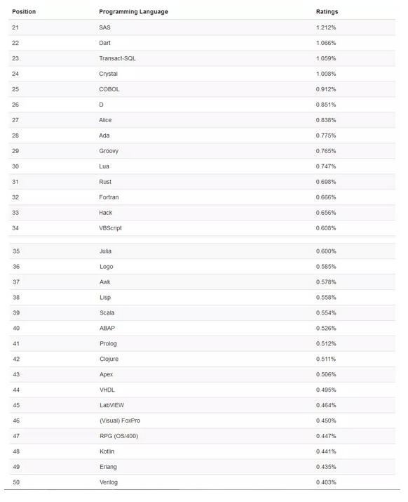 其他编程语言排名