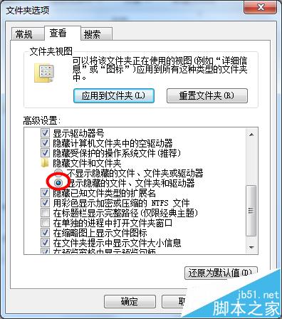 2、点击搜索,设置可见隐藏文件夹
