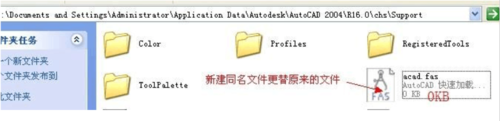 1、关闭CAD然后打开 C:\Documents and Settings\用户\Application Data\Autodesk\AutoCAD 2004\R16.0\chs\Support这个路径,找到一个acad.fas文件(这里暂且以2004版本为例)。