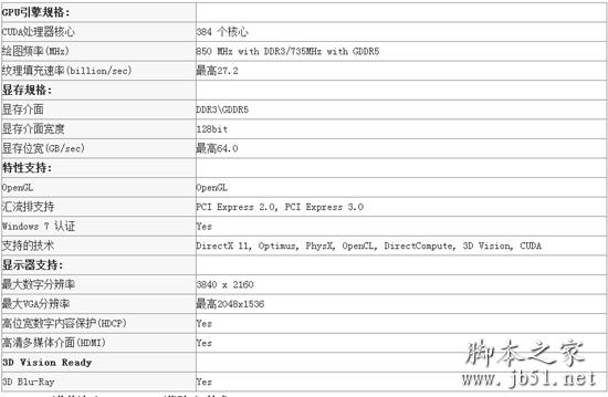 GT 650M参数表及GeForce GT 650M规格特点吧。