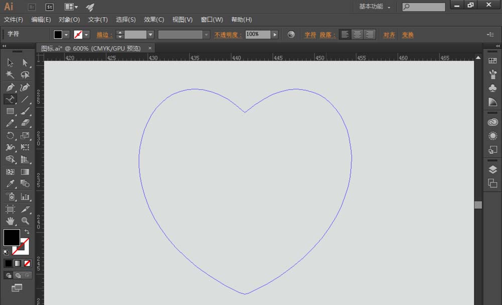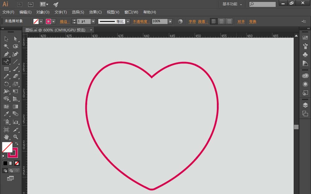 1、打开AI软件,新建文档,选择【钢笔工具】,绘制出一个心形,如图所示: