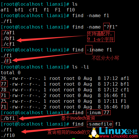 -samefile name :基于 相同inode 号 的查找(查找硬链接)
