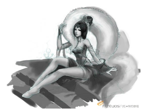 2、根据我的构思,画出狐精的外轮廓,这一步可以放开自己的思维,尽量把要表达的人或物做到。