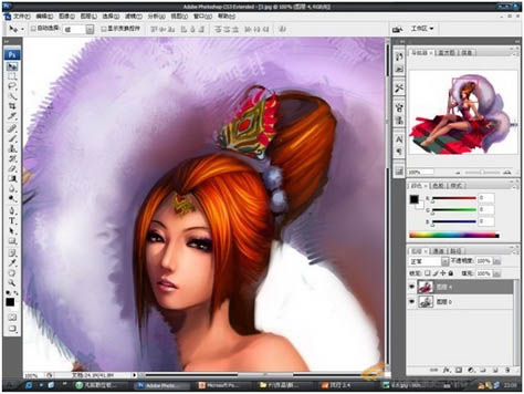 13、细致的刻画头饰,提出高光,用颜色减淡,属性设置为高光,在搞光初涂抹,增加金属质感。