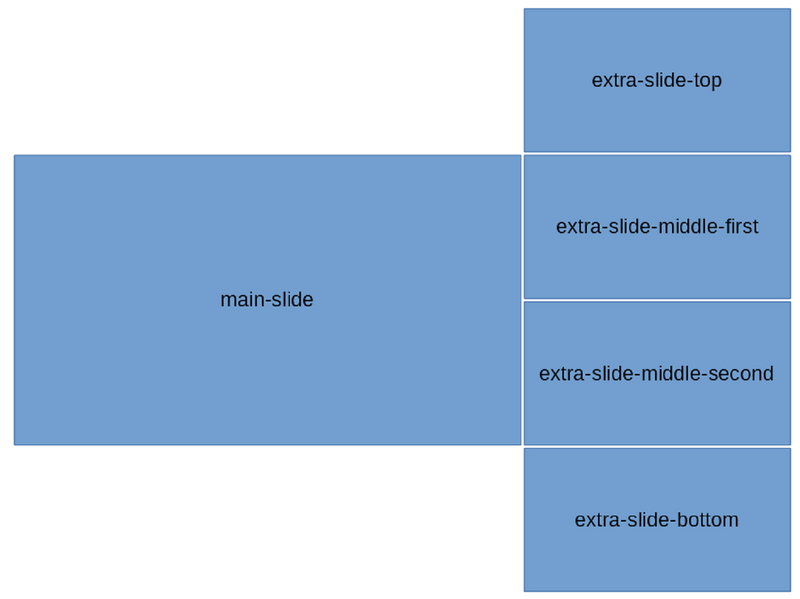 Vue的理念是以数据驱动视图,所以拒绝通过改变元素的margin-top来实现滚动效果。写好css样式,只需改变每张图片的class即可实现轮播效果。动画效果交给transition完成。可以将轮播图看成两个(mainSlide和extraSlide),各个图片的位置如图所示: