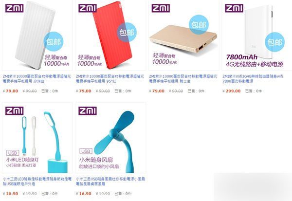 从紫米淘宝店首页来看,紫米10000mAh聚合物移动电源特价79元、小米风扇16.9元,还有买ZMI随身路由器送小米风扇、LED随身灯,全场满79元包邮等优惠。