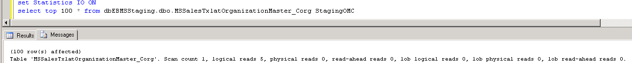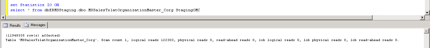 SET STATISTICS IO ON