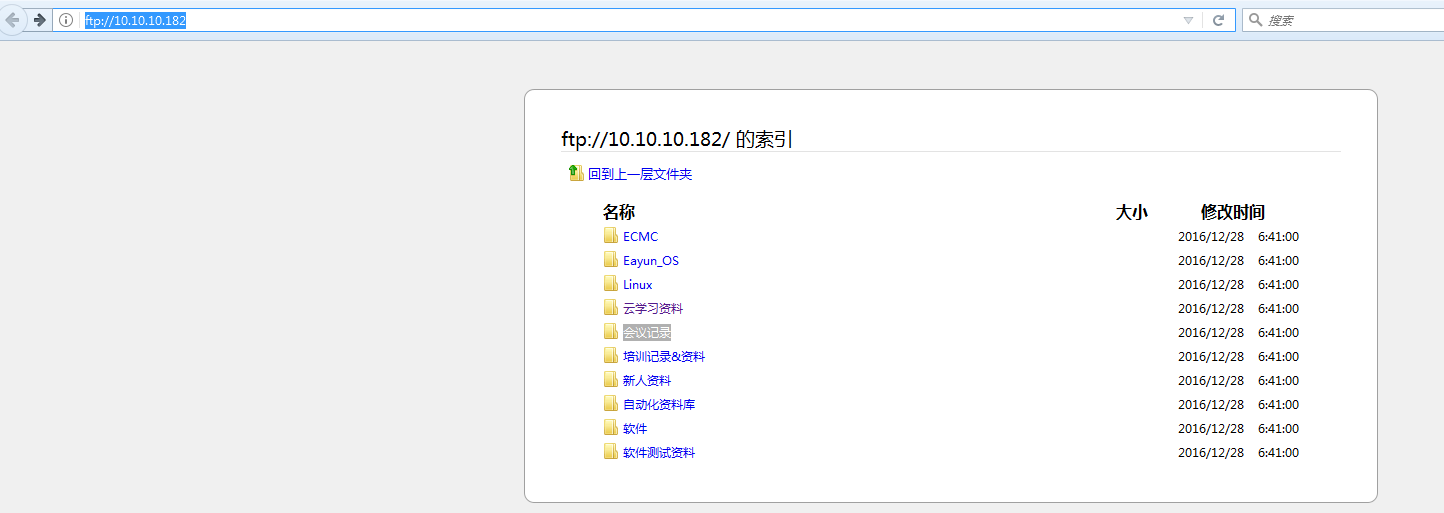 通过浏览器ftp://localhost:21访问,显示如下,表示访问成功: