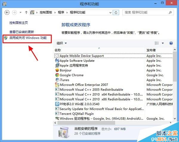 2)点击进入“卸载程序>>>启用或关闭 Windows 功能”
