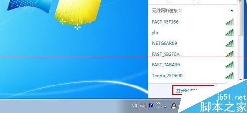 1、我们点击任务栏右下角的网络图标,这里我们要打开网络和共享中心。