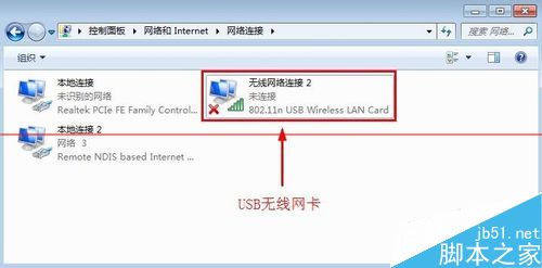 4、网络连接窗口中可以看到电脑上网络设备,我们找到无线网卡设备。