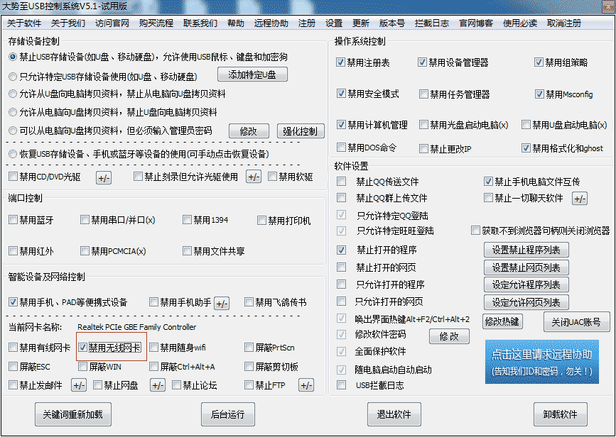 图:大势至禁用无线网卡工具来禁止无线网卡使用