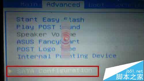 3、使用键盘下方向键,移动光标到SATA Conf Igurat Ion,按Enter(回车)键确定