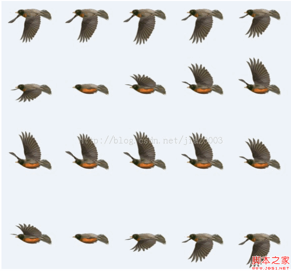 一个22帧的大雁飞行图片实现的效果: