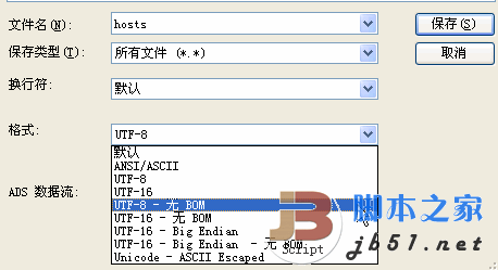 转换的方法有很多,常见的UltraEdit-32或NotePad++都可以,以UltraEdit-32为例。打开文件后,选择“另存为”,在“格式”一栏中有如下选择: